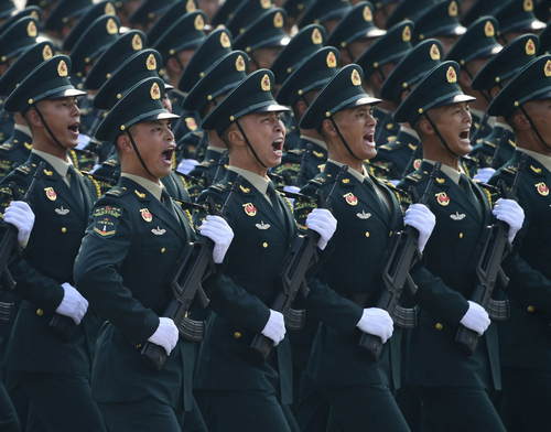 2019年10月1日,慶祝中華人民共和國成立70周年大會在北京天安門廣場隆重舉行。這是火箭軍方隊(duì)接受檢閱。新華社記者郭緒雷攝