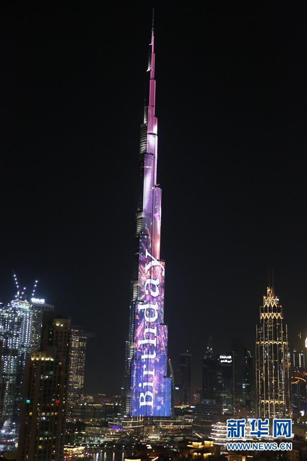 這是1月4日在阿聯(lián)酋迪拜拍攝的世界第一高樓哈利法塔慶祝開放10周年燈光秀。新華社記者蘇小坡攝