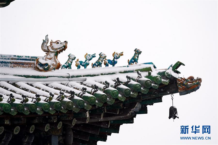 1月5日拍攝的平遙古城迎薰門(mén)城樓的外檐斗拱。新華社記者詹彥攝