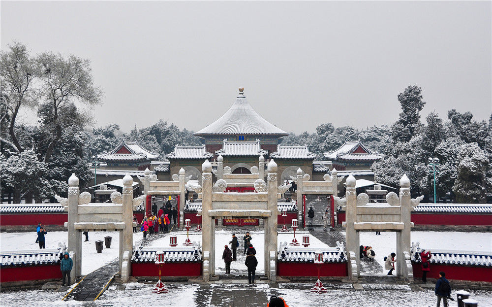 2019年11月30日,北京,初雪過(guò)后,天壇公園銀裝素裹,白雪古建相互映襯,景色迷人。時(shí)永平/千龍圖像/視覺(jué)中國(guó)