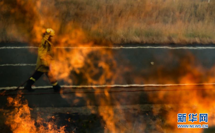 11月11日,在澳大利亞新南威爾士州塔里附近的山地,消防員在撲滅山火。新華社記者白雪飛攝