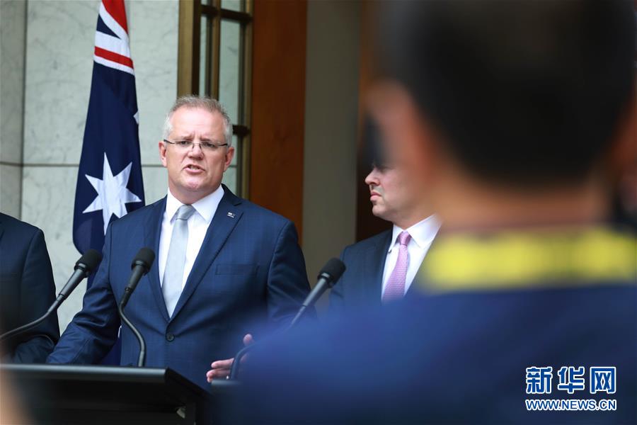 1月6日,在澳大利亞首都堪培拉,澳大利亞總理莫里森(左)在國會大廈出席新聞發(fā)布會。新華社記者白旭攝