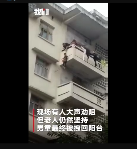 1月5日下午,四川南充市蓬安縣,一奶奶在百順街老百貨公司宿舍樓上,用一根繩子綁著孫子的腰,將其從五樓吊至三樓一窗戶遮雨臺(tái)上,只為救一只貓。此舉嚇得周圍鄰居紛紛呼喊:危險(xiǎn)!網(wǎng)友:小孩子不懂事,老人是糊涂了嗎?到底誰(shuí)是親的?