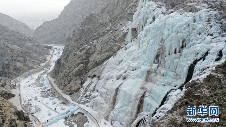 這是1月7日拍攝的賀蘭山巖畫景區(qū)內的冰瀑景觀。 新華社記者 王鵬 攝