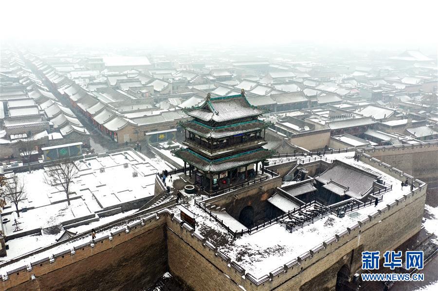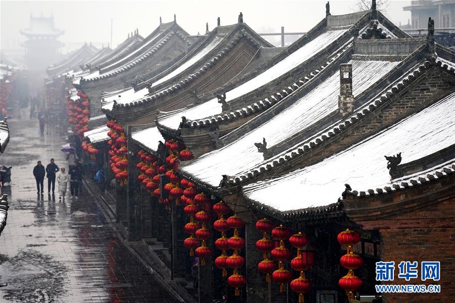 當(dāng)日,山西省平遙縣迎來降雪,雪中的平遙古城銀裝素裹,美景如畫。平遙古城是目前中國保存最完整的古代縣級(jí)城池之一,1997年被列入世界文化遺產(chǎn)名錄。