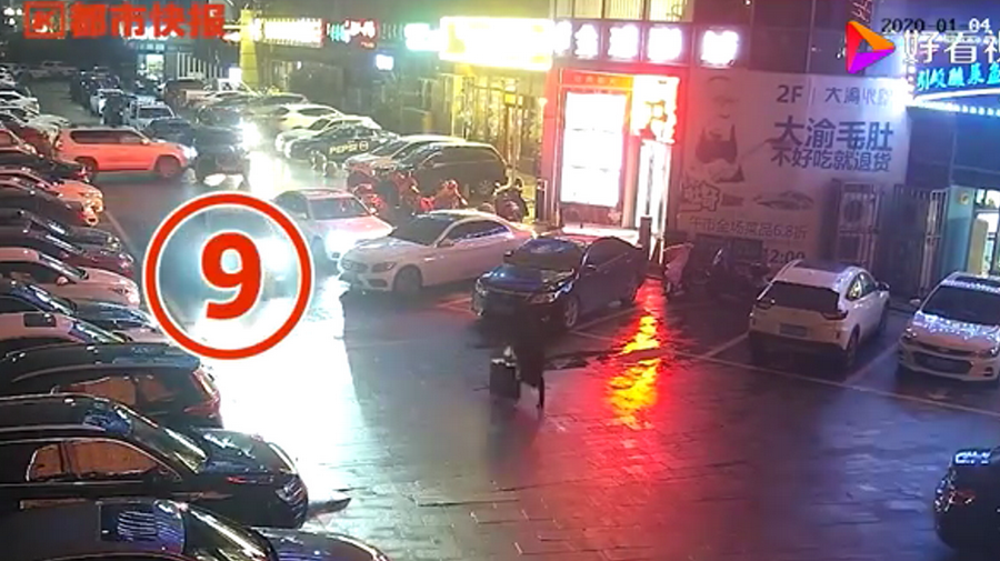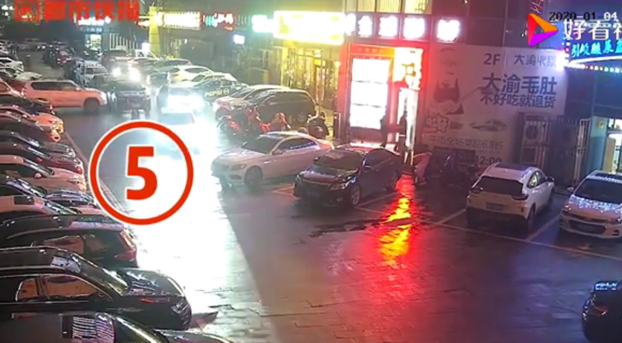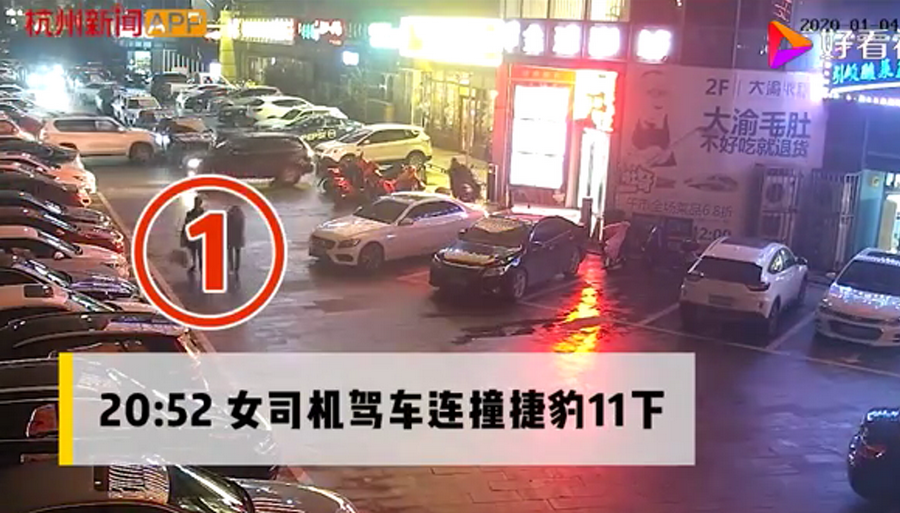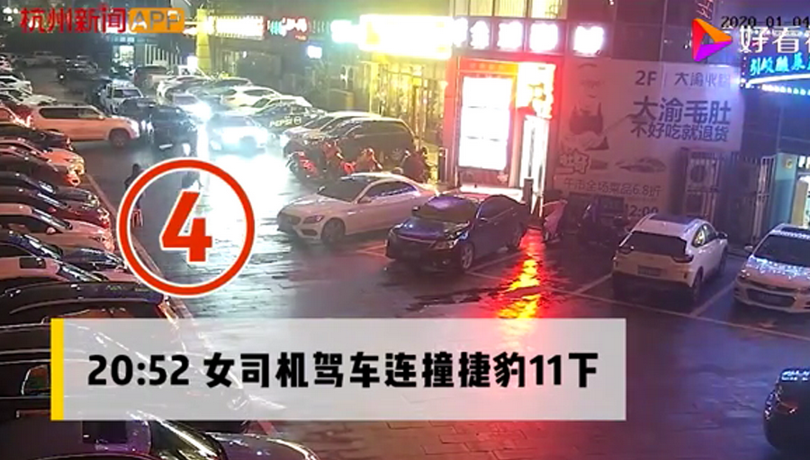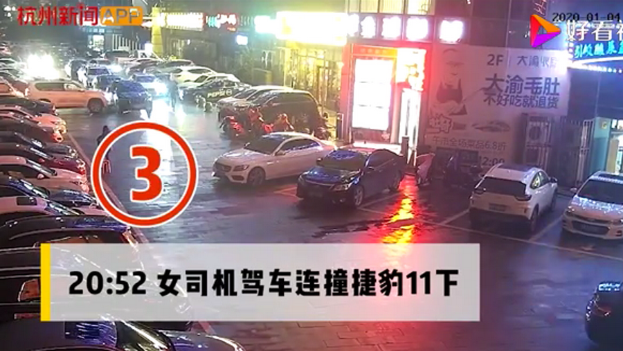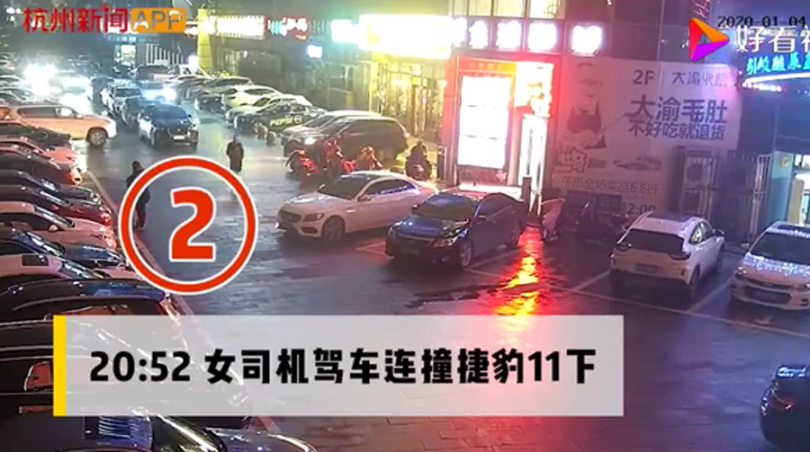 通過(guò)監(jiān)控發(fā)現(xiàn),捷豹車(chē)當(dāng)時(shí)并沒(méi)有停在停車(chē)位上,而是橫著停在停車(chē)位前的通道上,正好擋住了停在停車(chē)位里面的車(chē)輛。晚上8點(diǎn)40左右,一輛白色豐田普拉多越野車(chē)被捷豹擋住無(wú)法出去,10多分鐘后,司機(jī)通過(guò)倒車(chē)再加速十幾次撞擊捷豹,最終把車(chē)輛撞開(kāi)后駛離現(xiàn)場(chǎng)。