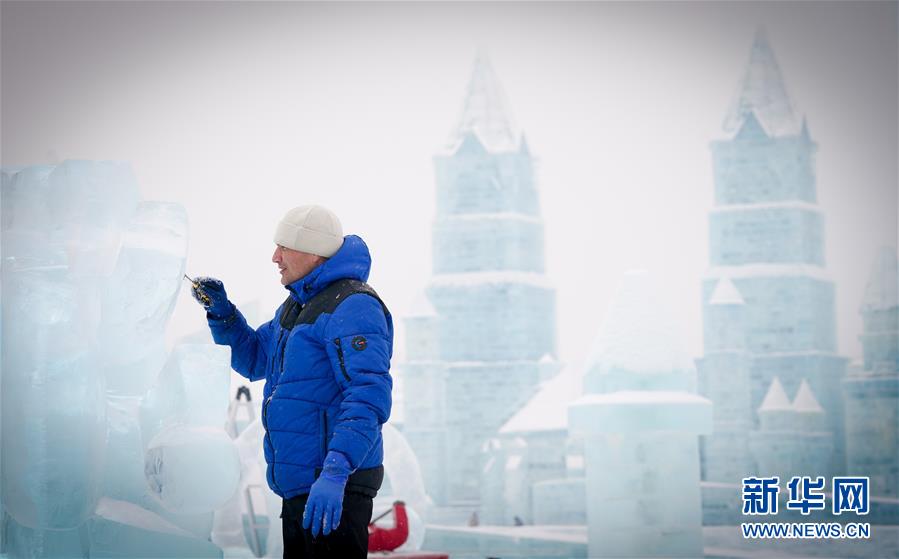 1月7日,參賽者在進行冰雕創(chuàng)作。當日,在哈爾濱冰雪大世界園區(qū)舉行的第三十四屆中國哈爾濱國際冰雕比賽進入第二天,參賽的冰雕作品已芳容初現(xiàn)。新華社記者王松攝