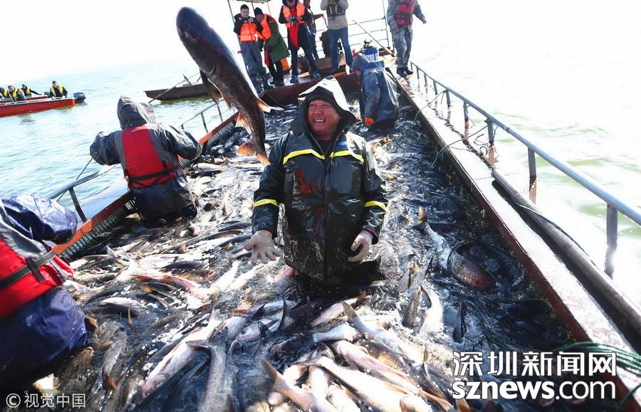 2018年12月26日,吉林松原,查干湖迎來(lái)了“紅網(wǎng)”,單網(wǎng)捕撈約30萬(wàn)斤。