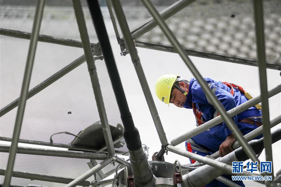 8月28日,工作人員在對(duì)FAST反射面板進(jìn)行檢修。新華社記者歐東衢攝