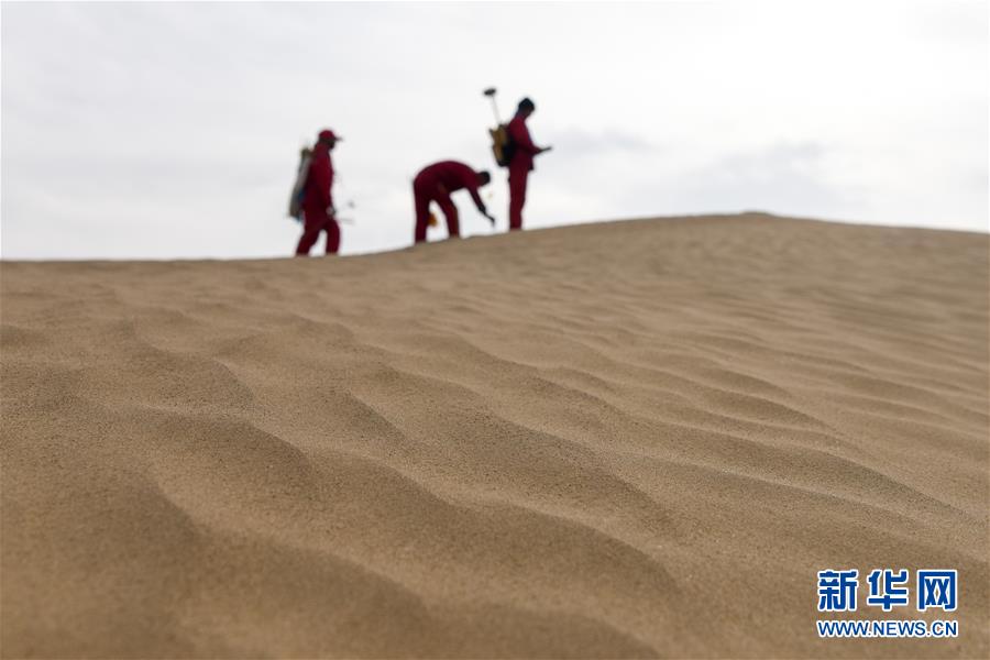 1月13日,測(cè)量工在測(cè)線上布設(shè)炮點(diǎn)樁號(hào)。地球物理勘探是油氣開發(fā)的第一步,相當(dāng)于給地球做CT。物探工人按照嚴(yán)格的測(cè)線部署,在相應(yīng)位置鉆井,然后實(shí)施地震,采集地震波數(shù)據(jù)??蒲腥藛T通過(guò)數(shù)據(jù)組成的“CT片”,就能夠清晰地“看”到地下的地質(zhì)結(jié)構(gòu),判斷哪里埋藏有石油或者天然氣。2019年10月,東方地球物理勘探有限責(zé)任公司塔里木物探處2113隊(duì)進(jìn)入新疆塔克拉瑪干沙漠腹地,開始中古14-21、塔中2兩個(gè)區(qū)塊的三維地震勘探。近2000名物探工人將在1000平方公里的范圍內(nèi)一直工作到2020年4月,這也意味著他們將在塔克拉瑪干沙漠腹地連續(xù)度過(guò)第14個(gè)除夕夜。蘊(yùn)藏著豐富石油天然氣資源的新疆塔克拉瑪干沙漠有“死亡之?!敝Q,氣候干燥,年降水量在50毫米以下,冬季地表最低溫度超過(guò)零下30攝氏度,是世界油氣勘探難度最大的地區(qū)之一。為避開風(fēng)季,物探工人每年9、10月份進(jìn)入沙漠,一直工作到來(lái)年4月,夜以繼日與黃沙、嚴(yán)寒為伴,用辛勤的汗水,為祖國(guó)找油找氣。新華社記者丁磊攝
