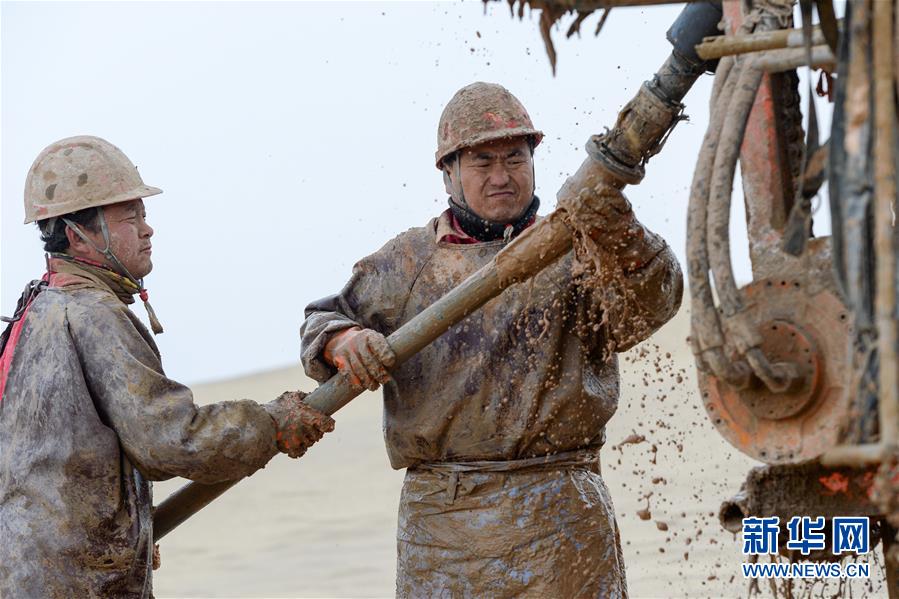 1月13日,鉆井工在連接鉆桿。地球物理勘探是油氣開發(fā)的第一步,相當(dāng)于給地球做CT。物探工人按照嚴(yán)格的測線部署,在相應(yīng)位置鉆井,然后實(shí)施地震,采集地震波數(shù)據(jù)??蒲腥藛T通過數(shù)據(jù)組成的“CT片”,就能夠清晰地“看”到地下的地質(zhì)結(jié)構(gòu),判斷哪里埋藏有石油或者天然氣。2019年10月,東方地球物理勘探有限責(zé)任公司塔里木物探處2113隊(duì)進(jìn)入新疆塔克拉瑪干沙漠腹地,開始中古14-21、塔中2兩個(gè)區(qū)塊的三維地震勘探。近2000名物探工人將在1000平方公里的范圍內(nèi)一直工作到2020年4月,這也意味著他們將在塔克拉瑪干沙漠腹地連續(xù)度過第14個(gè)除夕夜。蘊(yùn)藏著豐富石油天然氣資源的新疆塔克拉瑪干沙漠有“死亡之?!敝Q,氣候干燥,年降水量在50毫米以下,冬季地表最低溫度超過零下30攝氏度,是世界油氣勘探難度最大的地區(qū)之一。為避開風(fēng)季,物探工人每年9、10月份進(jìn)入沙漠,一直工作到來年4月,夜以繼日與黃沙、嚴(yán)寒為伴,用辛勤的汗水,為祖國找油找氣。新華社記者丁磊攝
