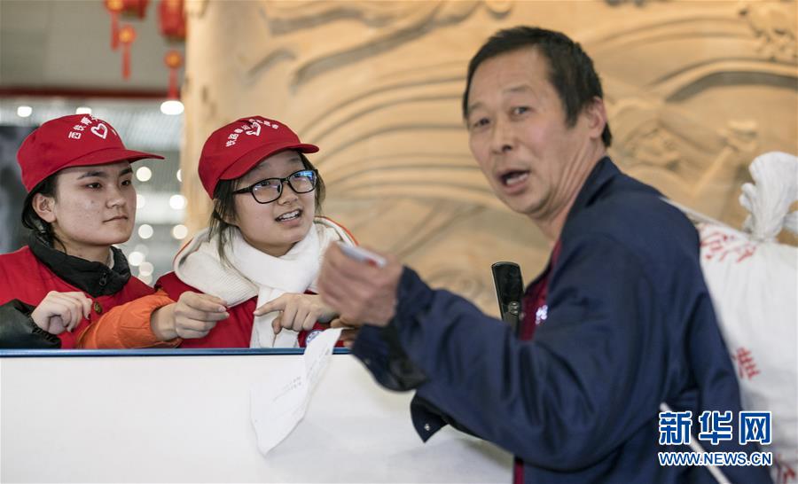 1月14日,在西安北站候車大廳,青年志愿者在為旅客服務(wù)。路再遠(yuǎn)、再艱辛,也擋不住回家的腳步。在西安北站的每一個(gè)角落,處處充滿溫情和歸鄉(xiāng)的盼望。連日來,西安北站日均發(fā)送旅客12.1萬人次,一列列春運(yùn)的列車,載著中國(guó)人的鄉(xiāng)愁,駛向遠(yuǎn)方。新華社記者陶明攝