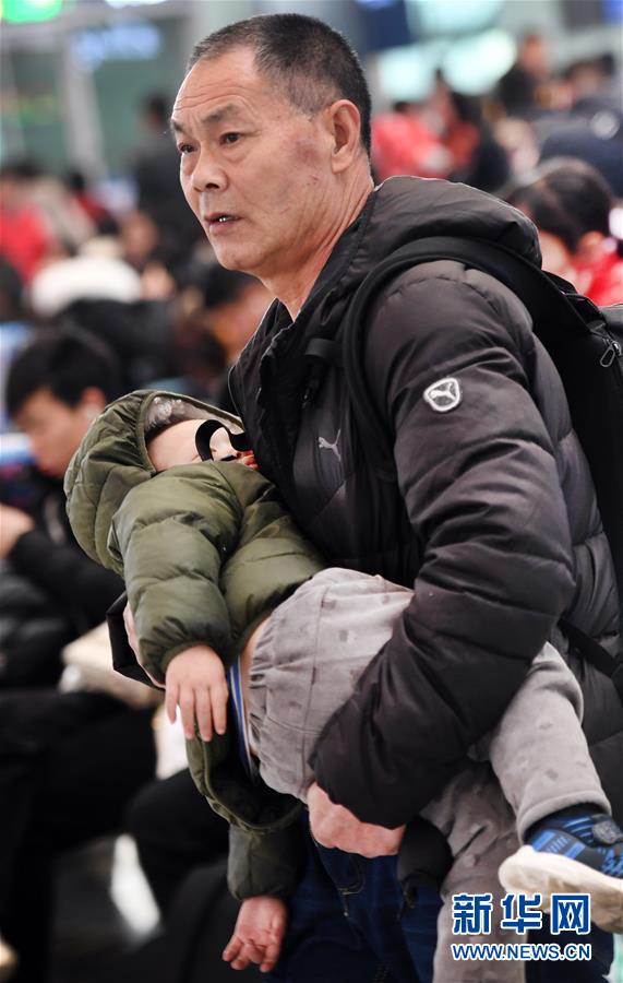 1月14日,在西安北站候車大廳,一位旅客抱著睡熟的孩子等待上車。路再遠(yuǎn)、再艱辛,也擋不住回家的腳步。在西安北站的每一個(gè)角落,處處充滿溫情和歸鄉(xiāng)的盼望。連日來,西安北站日均發(fā)送旅客12.1萬人次,一列列春運(yùn)的列車,載著中國人的鄉(xiāng)愁,駛向遠(yuǎn)方。新華社記者陶明攝