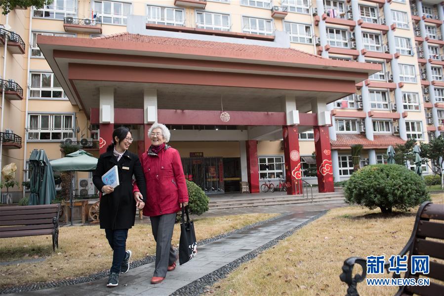 1月17日,一上午的活動結(jié)束,張丹俠(左)帶著王育華回杭州市社會福利中心的宿舍。新華社記者 翁忻旸 攝