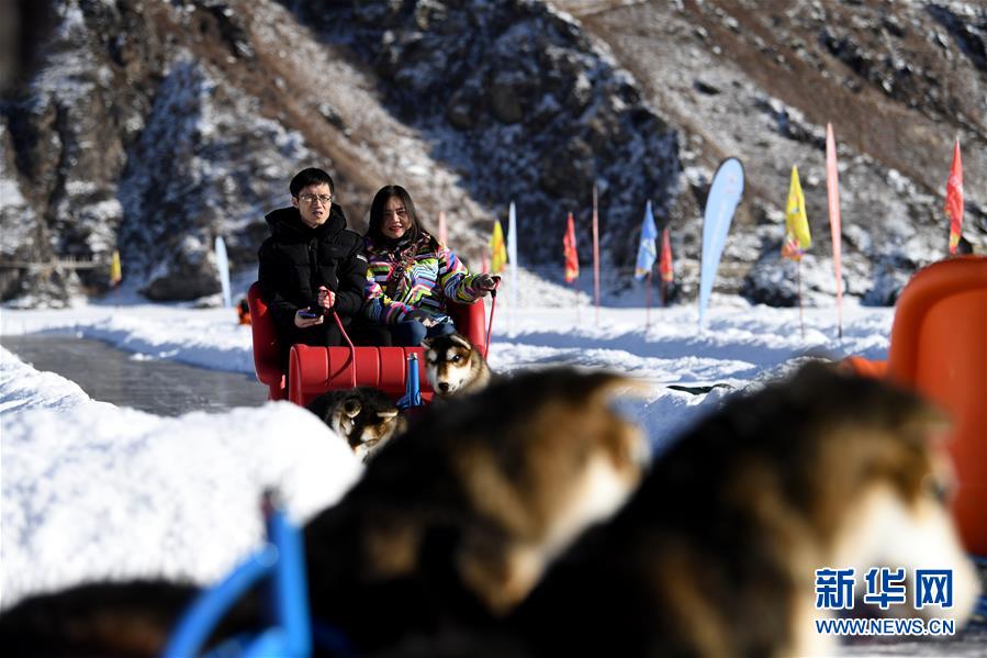 1月18日,游客在新疆天池景區(qū)玩電動(dòng)狗拉雪橇。新華社記者 沙達(dá)提 攝