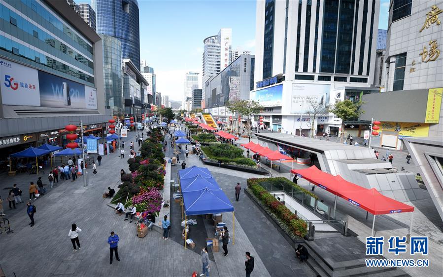 2月24日,在深圳華強北的步行街上,商戶、客戶和物流人員在室外忙碌。 新華社記者 毛思倩 攝
