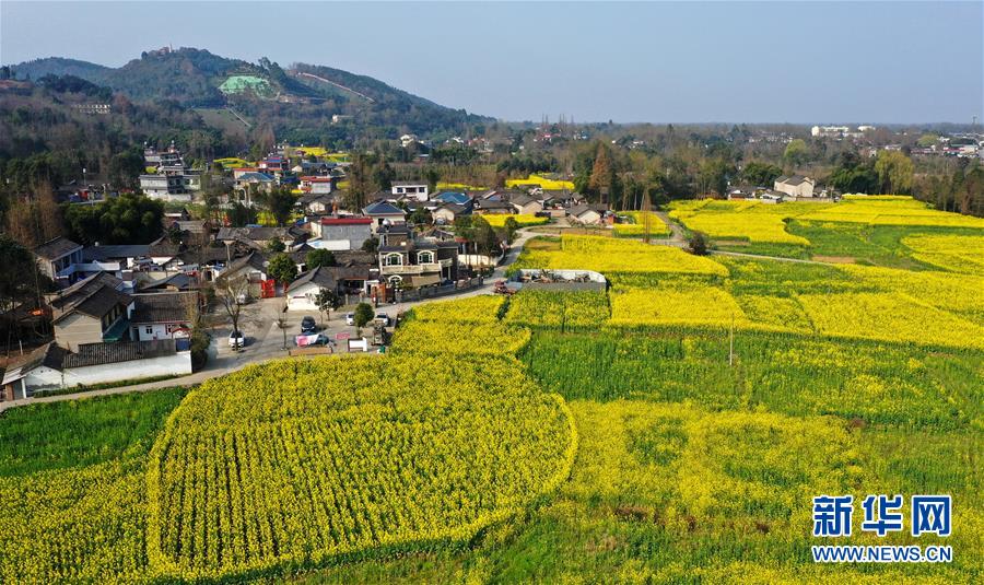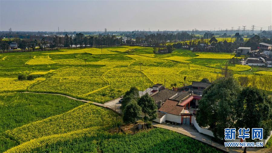 2月25日在四川省崇州市農(nóng)業(yè)產(chǎn)業(yè)功能區(qū)拍攝的油菜花田(無人機(jī)照片)。 初春時(shí)節(jié),正值農(nóng)時(shí)。成都平原西部的大邑、崇州等縣市油菜長勢良好,一片生機(jī)盎然的景象。 新華社記者 王曦 攝