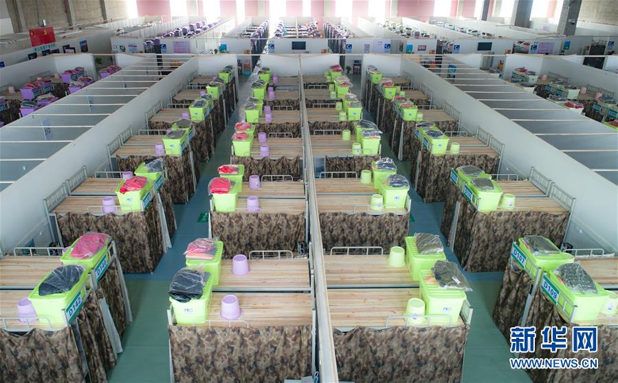 2月25日,在青山楠姆方艙醫(yī)院,工作人員在現(xiàn)場忙碌。 新華社記者 肖藝九 攝