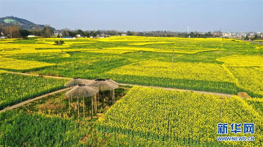 2月25日在四川省崇州市拍攝的油菜花田(無人機照片)。新華社記者王曦攝