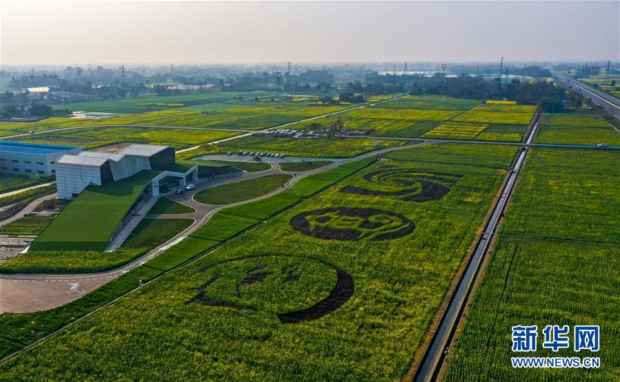2月24日在四川省大邑縣安仁鎮(zhèn)永興村拍攝的油菜花田(無人機(jī)照片)。新華社記者王曦攝