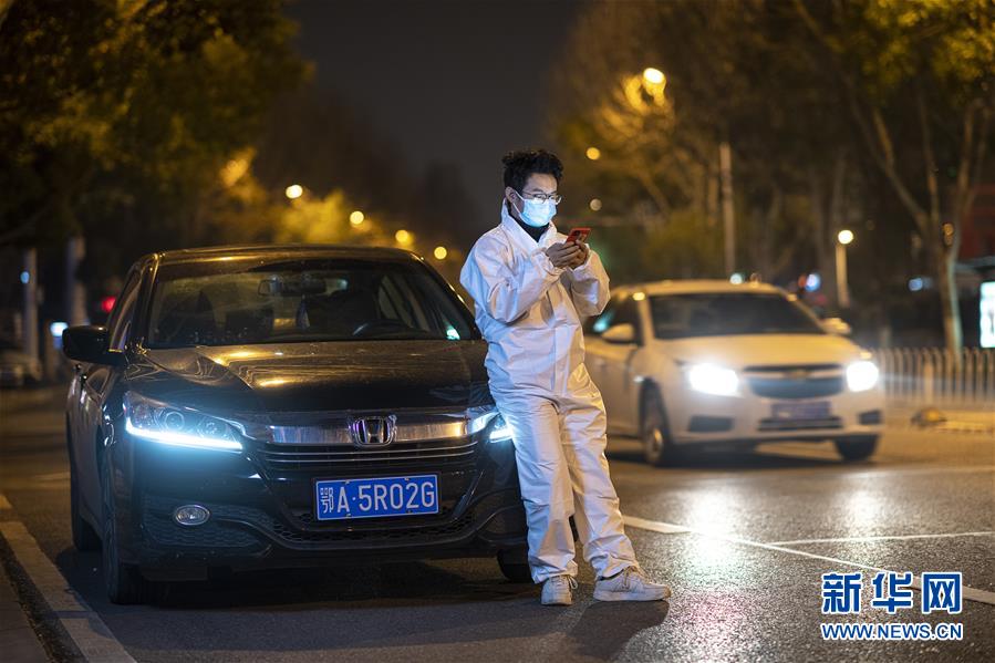 2月21日,王永朋在路邊等待,準(zhǔn)備接單。這個(gè)春節(jié)王永朋沒回老家甘肅安陽,他報(bào)名擔(dān)任高德醫(yī)護(hù)專車志愿者,開著年前剛買的新車,免費(fèi)接送醫(yī)護(hù)人員上下班。因?yàn)樽≡谖錆h新洲區(qū),距離江漢、武昌等老城區(qū)有相當(dāng)一段車程,他每天早上6點(diǎn)就起床出車,晚上十一二點(diǎn)才能回家休息,一天接送幾十位醫(yī)護(hù)人員上下班。每次到達(dá)目的地,醫(yī)生和護(hù)士下車后做的第一件事,總是向他致謝,還有不少人硬要塞錢給他,穿著防護(hù)衣、戴著口罩和護(hù)目鏡的王永朋,每次都微笑著退回了。新華社記者熊琦攝