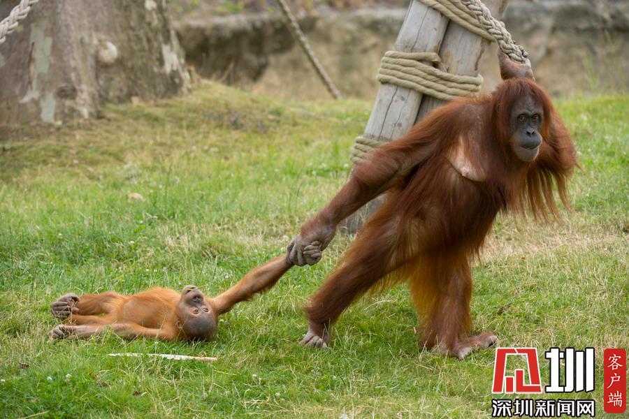 2020年2月27日報道(具體拍攝時間不詳),一只可愛的小猩猩玩著玩著,就被親媽拖著回家,像不像你媽喊你回家吃飯的樣子?攝影師 Koen Hartkamp在比利時 Pairi Daiza動物園參觀時,記錄了一堆猩猩母子的有趣互動。當時三歲的 Berani正獨自在戶外玩耍,不一會它的媽媽 Sari就找來了,一把拖著娃從草地上回到家門口,然后立刻送上擁抱和親吻,原來猩媽媽是想孩子了呀!