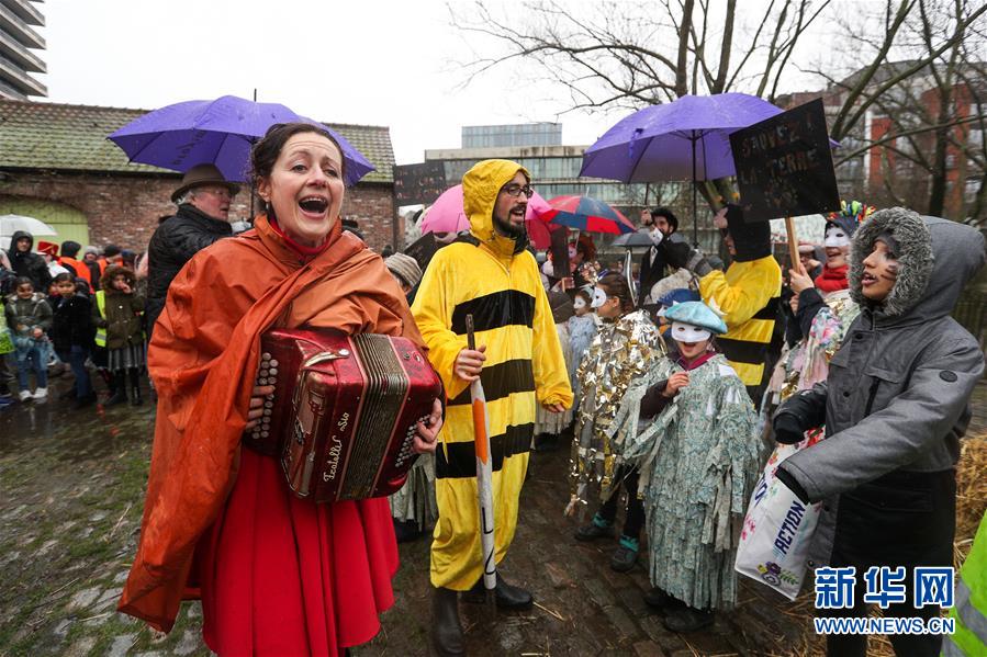 2月27日,人們在比利時布魯塞爾參加狂歡節(jié)活動。  新華社記者鄭煥松攝