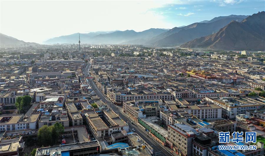 鳥瞰拉薩古城(5月16日無人機(jī)拍攝)。新華社記者張汝鋒攝