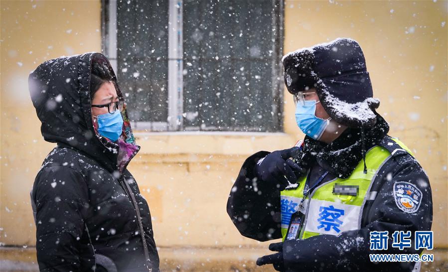 李可心(右)為一名市民講解相關規(guī)定(3月1日攝)。 新華社記者王松攝