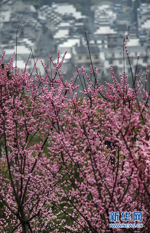 3月2日,盛開(kāi)的春梅映襯著平利縣長(zhǎng)安鎮(zhèn)高峰村徽派農(nóng)舍。新華社記者陶明攝
