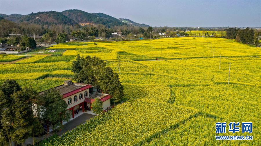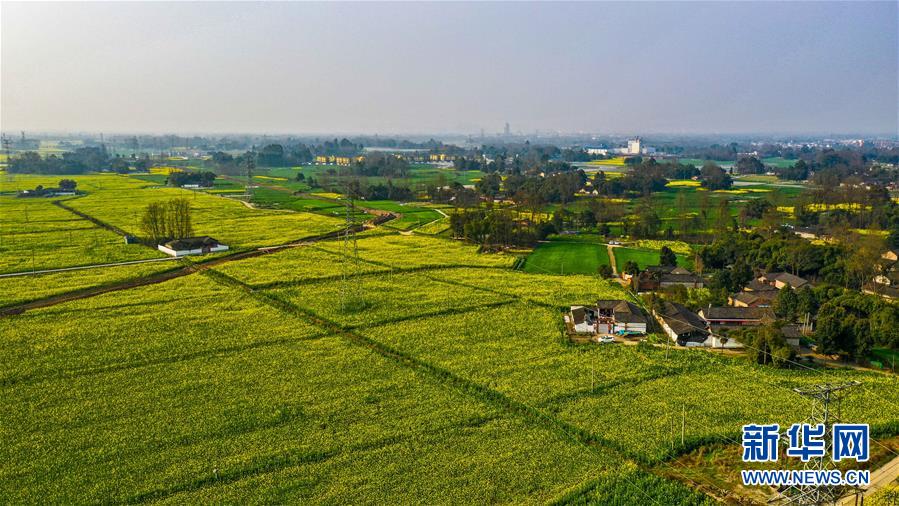 2月25日在四川省崇州市農(nóng)業(yè)產(chǎn)業(yè)功能區(qū)拍攝的油菜花田(無(wú)人機(jī)照片)。初春時(shí)節(jié),正值農(nóng)時(shí)。成都平原西部的大邑、崇州等縣市油菜長(zhǎng)勢(shì)良好,一片生機(jī)盎然的景象。新華社記者王曦?cái)z
