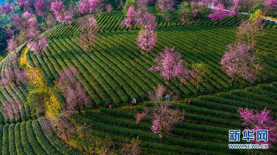 無量山櫻花谷:茶園泛綠櫻花似霞