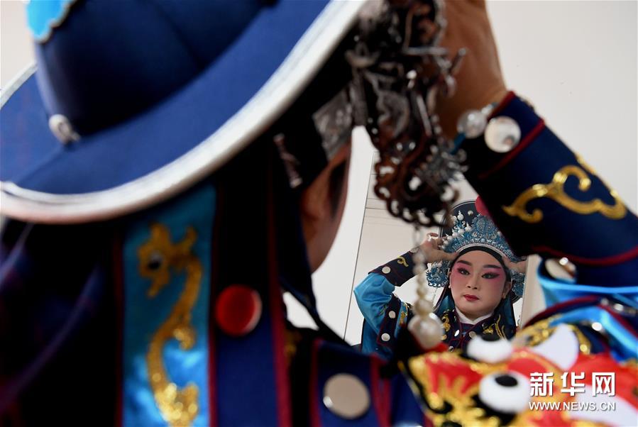 3月3日,李金玲在直播表演前整理頭盔。新華社記者 李安 攝