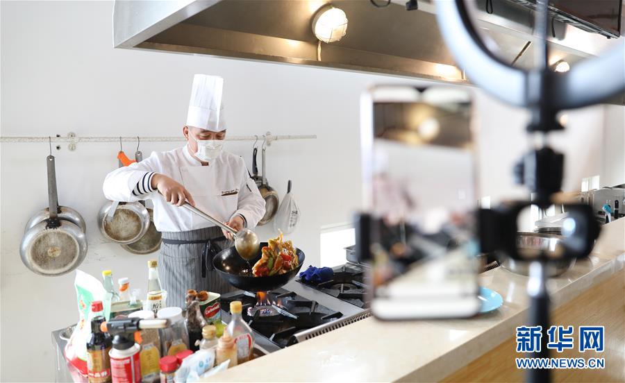 3月4日,職教城內(nèi)的鞍山市現(xiàn)代服務(wù)學(xué)校的李崇老師為學(xué)生進(jìn)行遼菜烹飪實(shí)訓(xùn)網(wǎng)絡(luò)授課。遼寧省鞍山市職教城內(nèi)的各類職業(yè)教育學(xué)校從3月2日恢復(fù)網(wǎng)絡(luò)授課以來(lái),教師們?cè)O(shè)置了豐富多彩的課程,提高1萬(wàn)余名學(xué)生線上學(xué)習(xí)的積極性。新華社記者 姚劍鋒攝