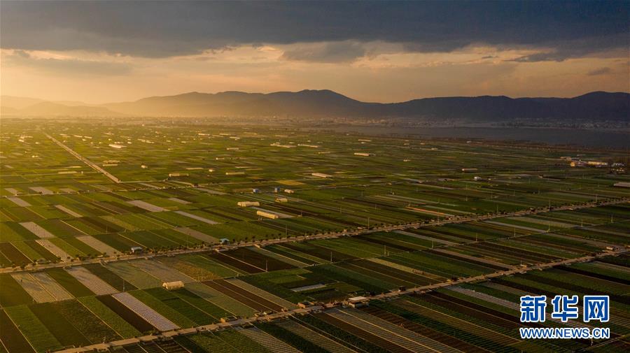 時(shí)下正值農(nóng)忙時(shí)節(jié),云南省玉溪市通海縣的農(nóng)作物長勢喜人,山巒、湖水與農(nóng)田組成了一幅美麗的田園詩畫卷。