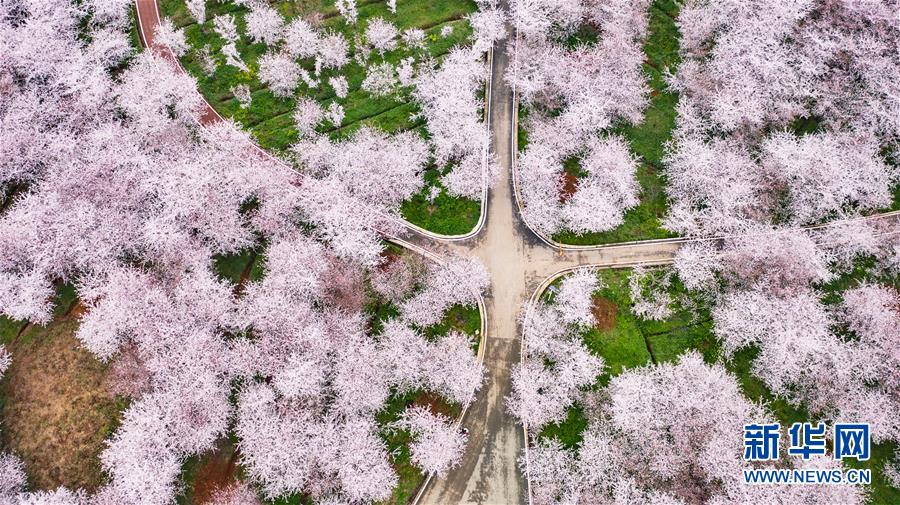 3月12日拍攝的貴安新區(qū)櫻花觀光園風(fēng)景(無(wú)人機(jī)照片)。 近日,貴州省貴安新區(qū)櫻花觀光園內(nèi)櫻花競(jìng)相盛開(kāi),花團(tuán)錦簇間春意盎然。據(jù)介紹,疫情防控期間,為避免人群聚集,櫻花園暫不接待游客。 新華社記者 陶亮 攝