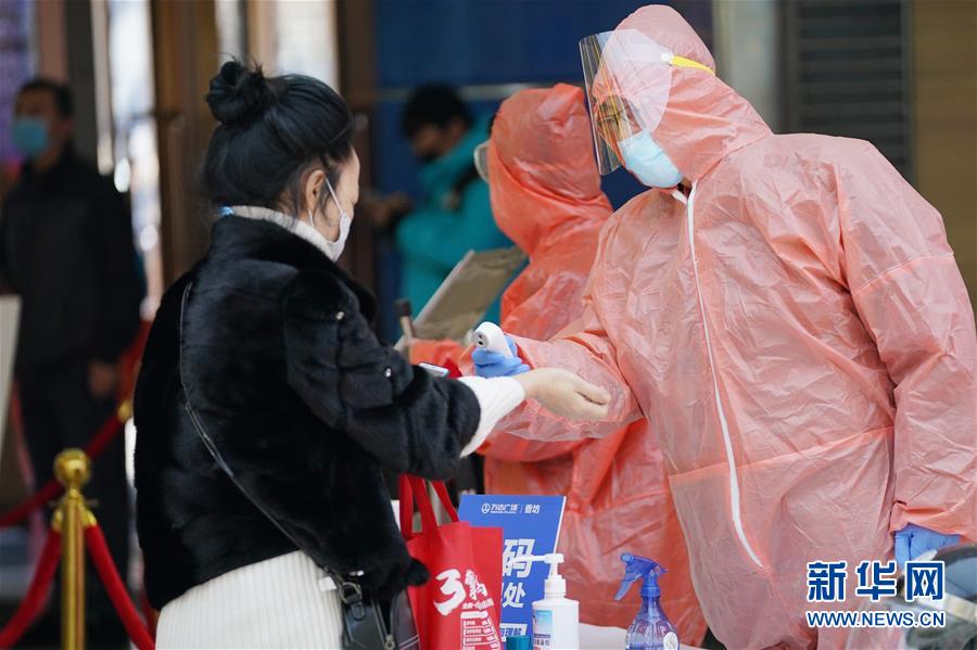 3月13日,在哈爾濱香坊萬達(dá)廣場(chǎng)內(nèi),工作人員在給進(jìn)店顧客測(cè)體溫。 近日,哈爾濱市多家大型商場(chǎng)陸續(xù)恢復(fù)營(yíng)業(yè)。這些恢復(fù)營(yíng)業(yè)的商場(chǎng)采取多種措施,從嚴(yán)細(xì)致做好疫情防控和安全風(fēng)險(xiǎn)防范工作,為廣大顧客提供安全放心的購(gòu)物空間。 新華社記者 王建威 攝