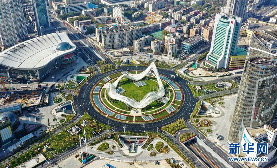 這是3月15日拍攝的武漢光谷廣場(無人機(jī)照片)。 3月15日,江城武漢天氣晴好,整個城市沐浴在和煦的春光中。 新華社記者 李賀 攝
