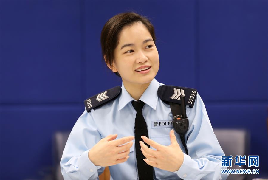 香港西區(qū)警署負責(zé)警民關(guān)系工作的警長陳Sir接受記者采訪(1月30日攝)。新華社記者李鋼攝