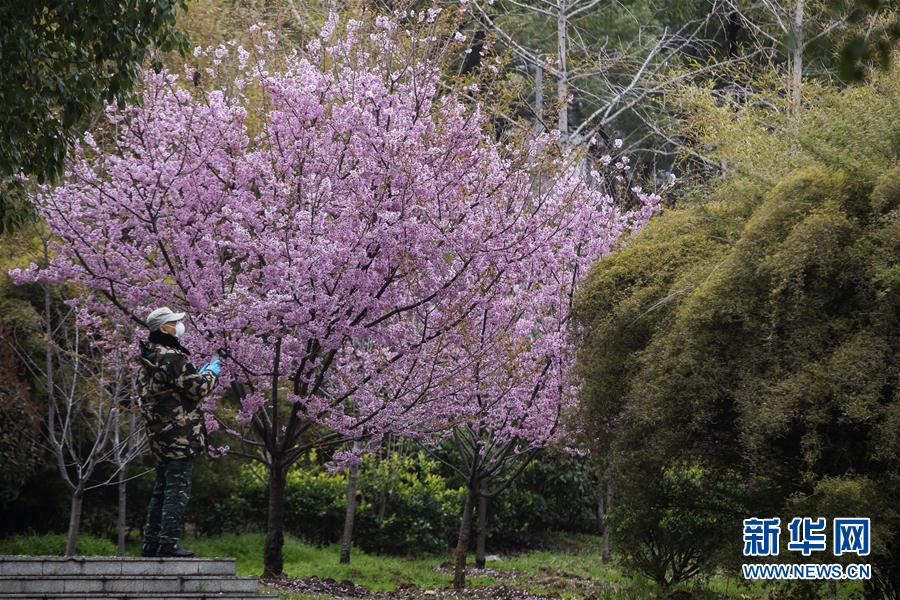 3月14日,游客在武漢東湖磨山櫻園游玩。近日氣溫漸升,武漢東湖磨山櫻園里的櫻花漸次盛開,帶來春天的氣息。新華社記者熊琦攝