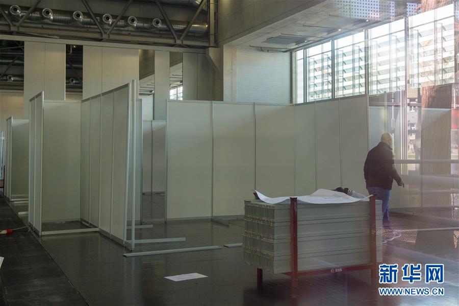3月14日,在即將改造成為方艙醫(yī)院的維也納展覽館內,工作人員正在加緊施工。近日,由于奧地利新型冠狀病毒感染人數(shù)不斷增加,奧地利首都維也納正在將該市的一座大型展覽館——維也納展覽館改造成為一座臨時性的方艙醫(yī)院。據(jù)當?shù)孛襟w介紹,該方艙醫(yī)院將在下周提供880張床位,用于收治輕度病癥患者。新華社記者郭晨攝