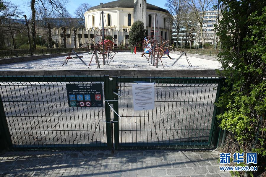 這是3月18日在比利時布魯塞爾拍攝的一處關(guān)閉的運(yùn)動場。 新華社記者 張鋮 攝