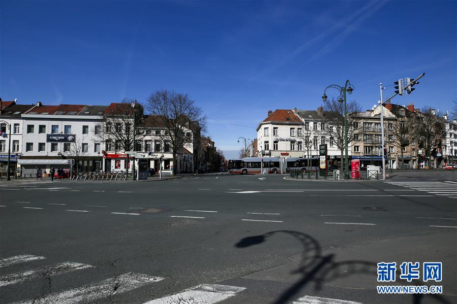 這是3月18日在比利時(shí)布魯塞爾拍攝的空曠的道路。 新華社記者 張鋮 攝