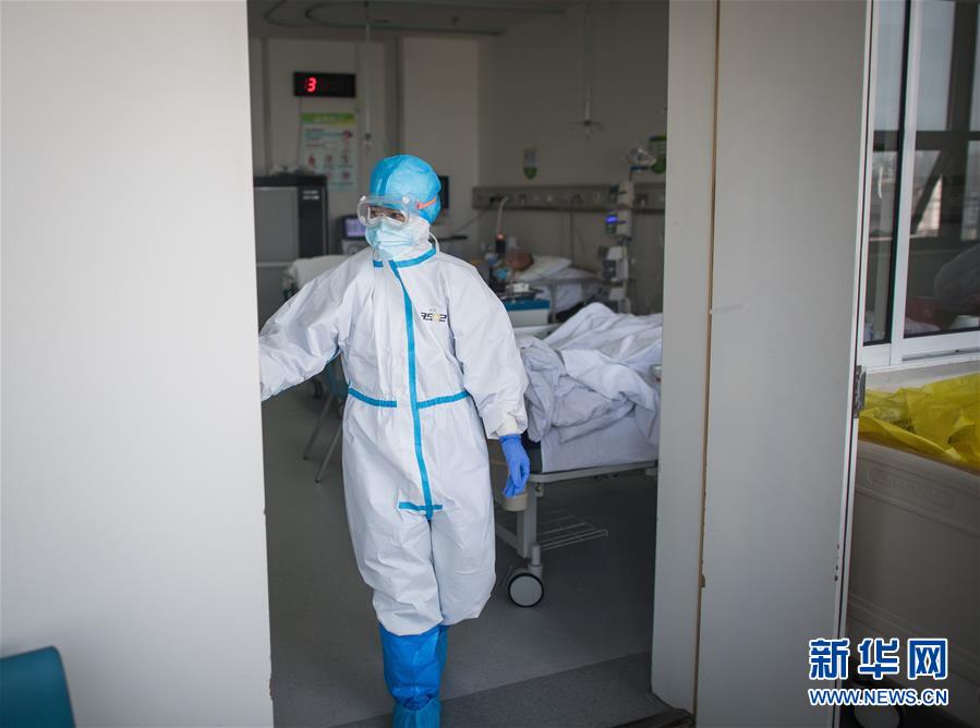 3月19日,在武漢市肺科醫(yī)院隔離病房,浙江醫(yī)療隊隊員在工作中。 新華社記者 肖藝九 攝