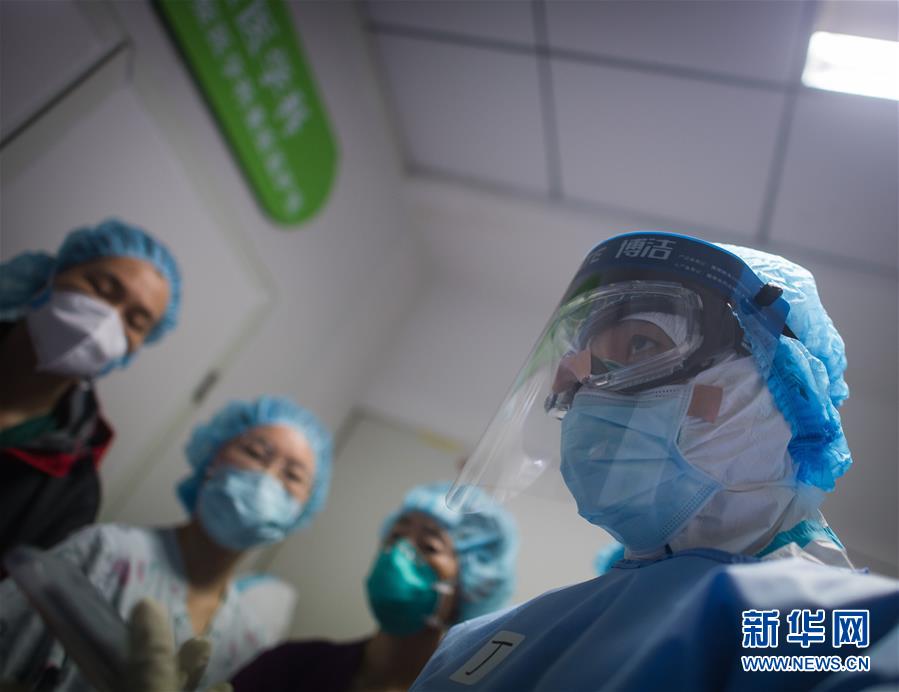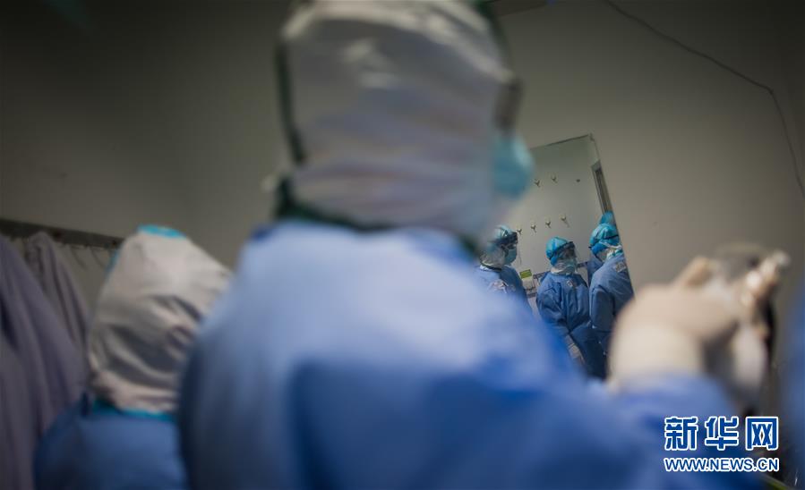 3月19日,在武漢市肺科醫(yī)院隔離病房,海南醫(yī)療隊隊員在現場忙碌。 新華社記者 肖藝九 攝