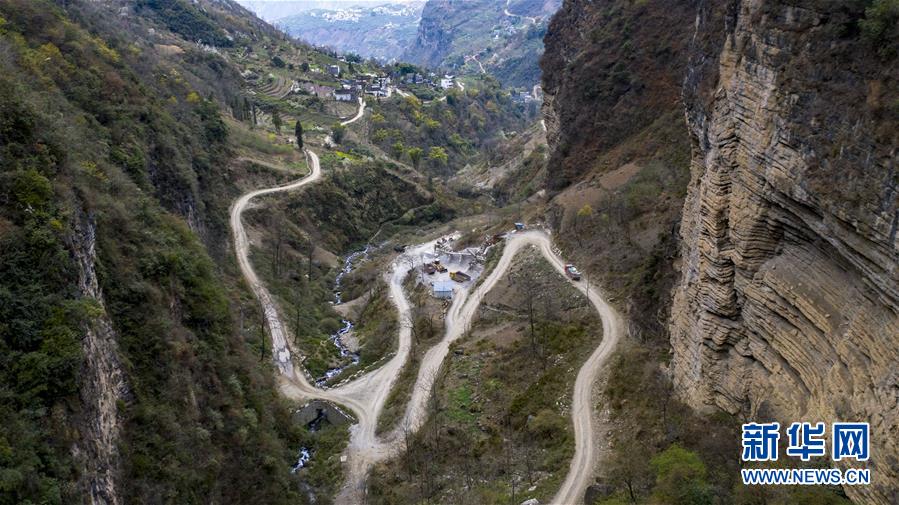 搬家的貨車行駛在云南省永善縣大興鎮(zhèn)駱丘村通往山外崎嶇的山路上(3月14日攝,無(wú)人機(jī)照片)。 新華社記者 江文耀 攝