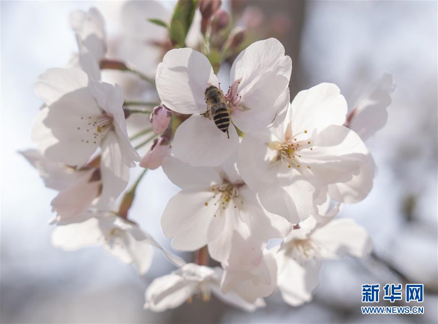 在武漢市武昌區(qū)被網(wǎng)友稱為“武漢最美停車場”的湖北日報停車場,櫻花開放(3月19日攝)。 新華社記者 才揚 攝