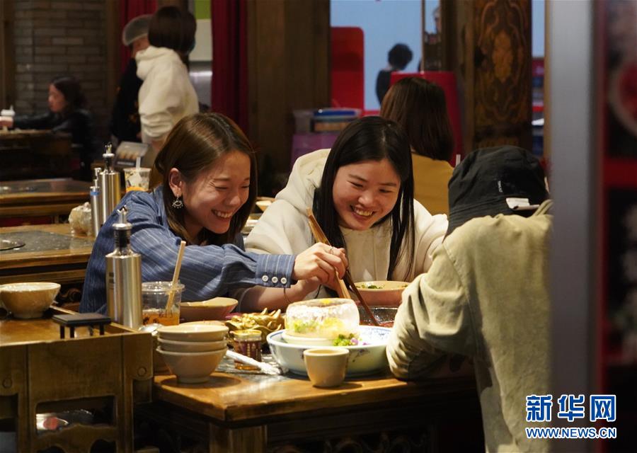3月21日,在四川省成都市的一家火鍋店內(nèi),顧客在就餐。近日,在做好新冠肺炎疫情防控措施的基礎(chǔ)上,四川省成都市的火鍋店逐漸恢復(fù)營業(yè)。新華社記者李夢(mèng)馨攝