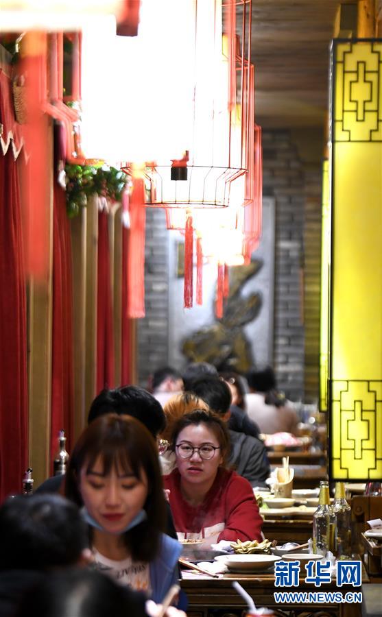 3月21日,在四川省成都市錦江區(qū)商業(yè)場(chǎng)街的一家火鍋店內(nèi),顧客在就餐。近日,在做好新冠肺炎疫情防控措施的基礎(chǔ)上,四川省成都市的火鍋店逐漸恢復(fù)營(yíng)業(yè)。新華社記者王曦?cái)z