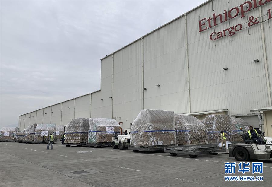 這是3月22日在埃塞俄比亞首都亞的斯亞貝巴國際機(jī)場拍攝的中國援助的抗疫物資。歷時10小時飛行,滿載著來自中國抗疫物資的埃航貨運包機(jī)22日上午抵達(dá)埃塞俄比亞首都亞的斯亞貝巴的國際機(jī)場,這是馬云公益基金會和阿里巴巴公益基金會捐贈非洲的部分醫(yī)療物資,用于支援非洲54國抗擊疫情。新華社記者王守寶攝